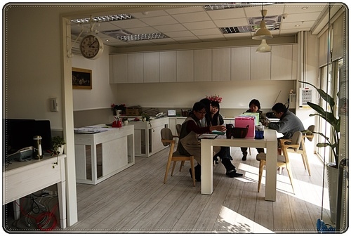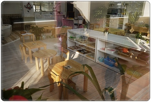 用餐區靠窗的部分是老師準備點心跟午餐的區域