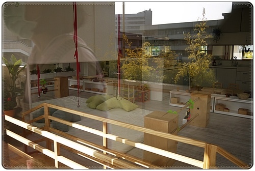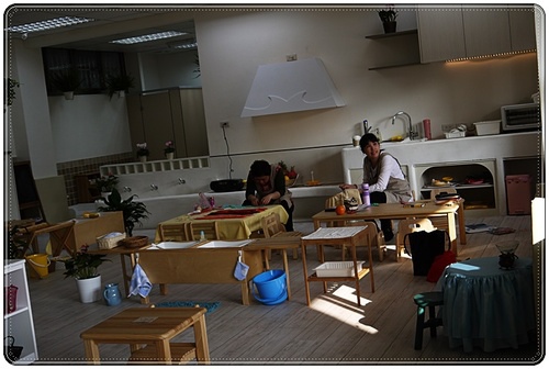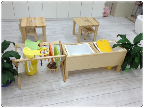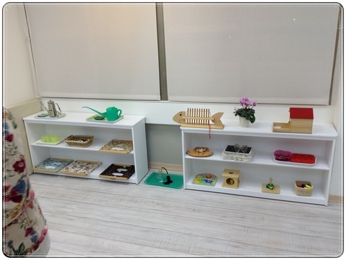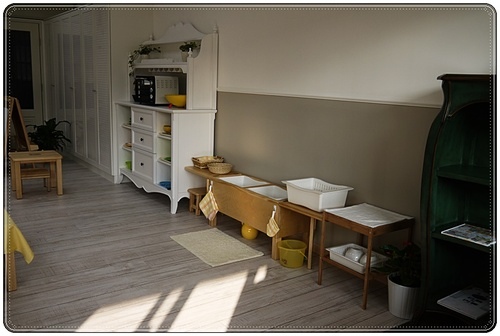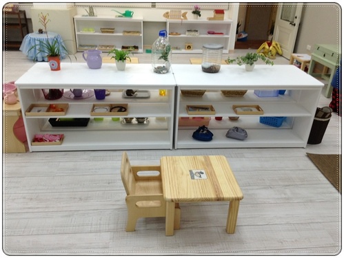 教室裡看不到常見的玩具,都是訓練生活常規還有小肌肉的教具,是不懂蒙梭的我不太能理解的東西@@