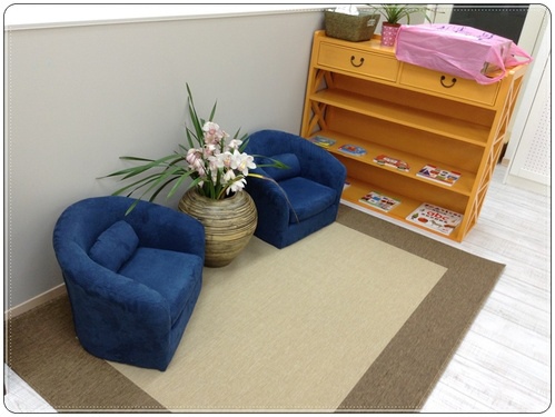 這個角度是櫃台+保健室的門,小朋友若發燒也是在這邊隔離等爸媽來接