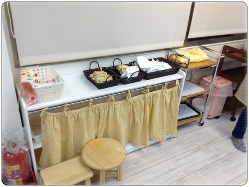 旁邊的櫃子每個小朋友有自己一格,擺放自己的尿布跟濕紙巾