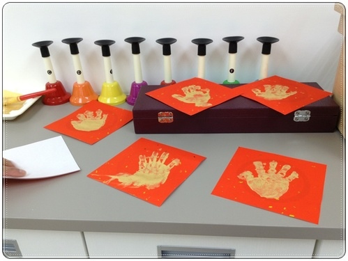 櫃子上面剛好看到小朋友們用手印做的春聯!(參觀時是過年前)