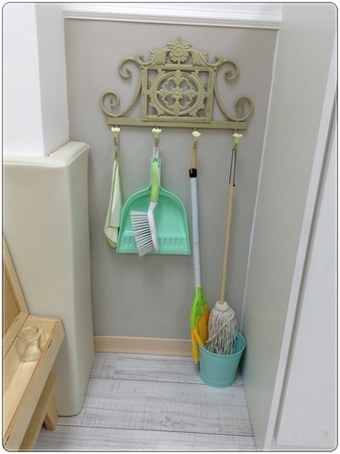 旁邊的小角落還放置了好可愛的迷你掃把拖把!
