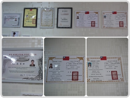 牆壁上貼滿了美睫美甲的證照,還有一張是從韓國來的耶!