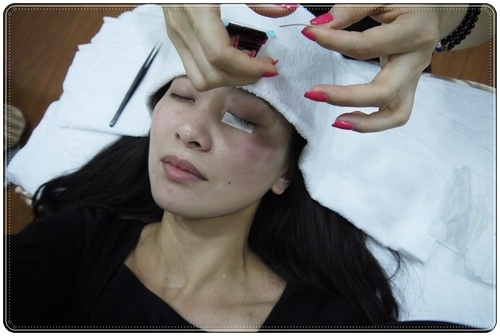 美睫師手真的非常巧,靠兩根鑷子仔細地將1根根假睫毛黏到我的真睫毛上