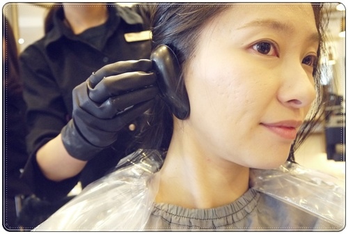 洗完頭回到座位,我享受了摩洛哥油熱敷按摩肩頸