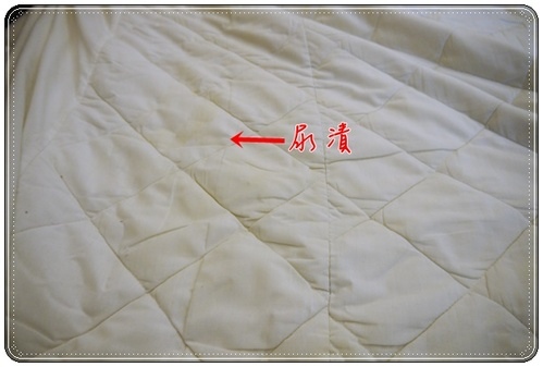 所以尿漬還是進攻了,幸好還有一層買床墊送的保潔墊擋著