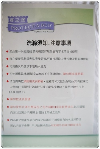 包裝內貼心的附上很大張的洗滌須知,第一條就提醒要先確認有無瑕疵再下水洗
