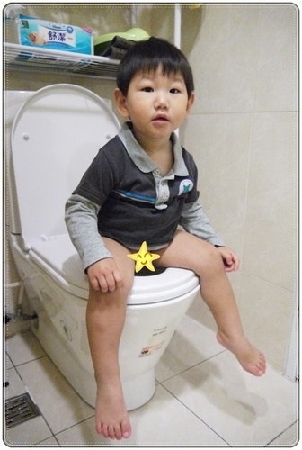 然後最後就是這樣上廁所.....像表演特技一樣,媽媽還要抓緊手深怕掉下去