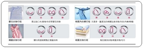 在使用不同的洗衣行程時,也會搭配到不同的媽媽手洗模式