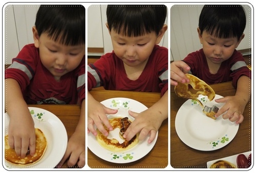 但我"飛"字音都還沒落,小允一壓好模就露出"終於可以吃了"的表情,看都不看直接塞進嘴巴裡