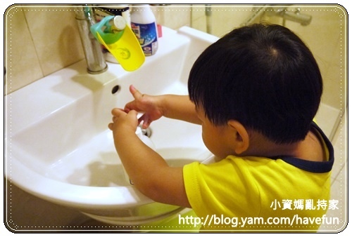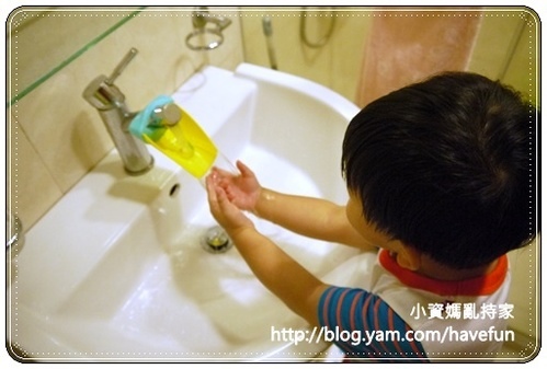 改用洗手乳後,小允又會自己跑去拿洗手乳玩,反而弄得到處都髒髒的