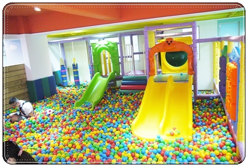 這間親子館的腹地不大,但是設施相當豐富,有球池、溜滑梯、沙坑、嚕嚕車,