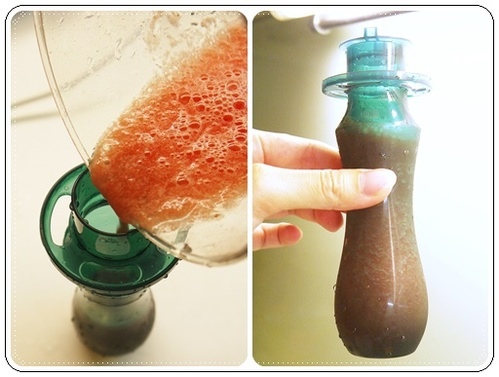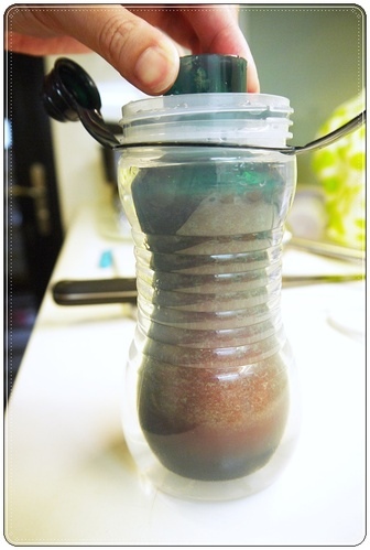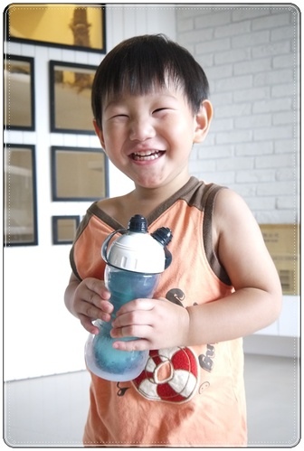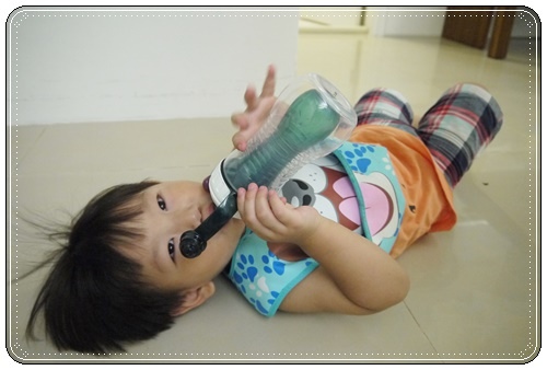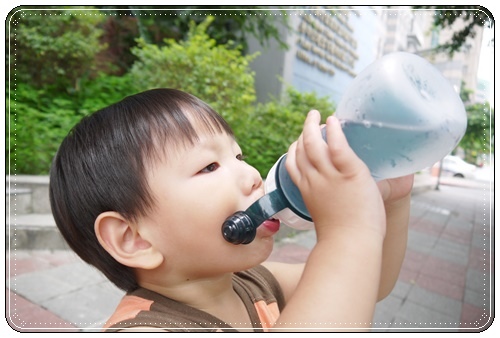 原來稍微晃動瓶身就可以喝到水了!再來就是要用"吸"的喔