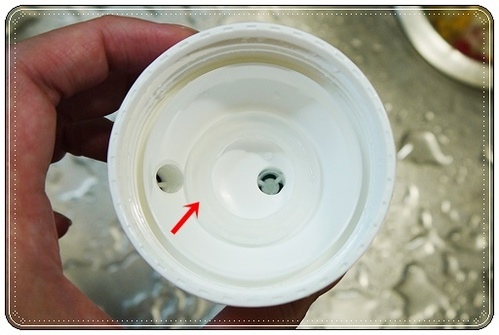 從冰庫取出後,內層的蓋子只要稍微沖一下冷水就會彈開,不需要用力拔