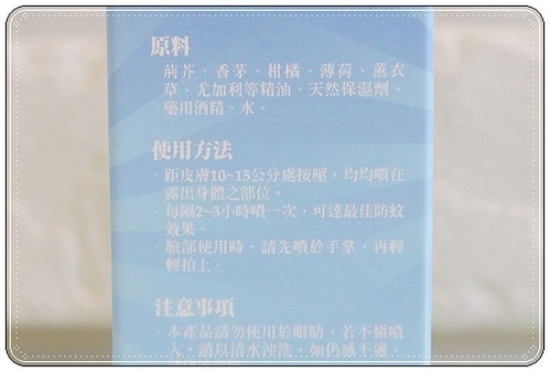 再來就是感覺吸收很快,不像其他牌子的防蚊液噴完會有一種黏膩感
