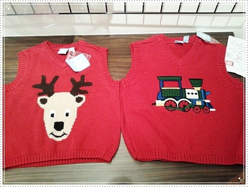 同樣花色也有背心款,旁邊紅色是Carter's的,但兩款比較起來JK的是雙面織法比較厚喔!