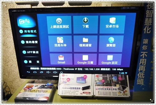 電視畫面展示的就是大通的Android智慧電視棒PXTV-100