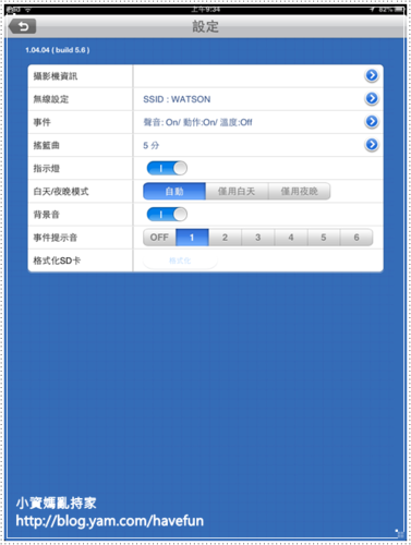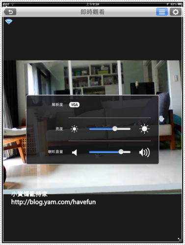 功能選單可以設定喇叭的音量與鏡頭亮度