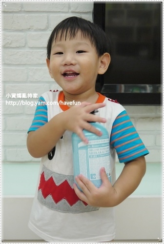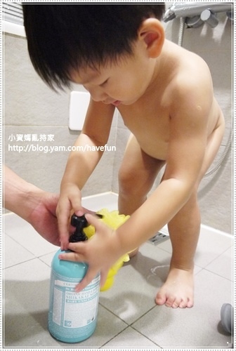 跟他說這是洗澡用的喔!最近很討厭洗澡的小允就興沖沖的抱著沐浴露自己進浴室要準備洗澡了XD