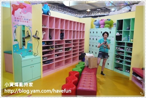 入場後會先到這個換鞋區,鞋櫃上方的大格子是讓家長放置包包或水壺