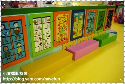 小廚房旁邊的牆面上,則是一整排的手眼協調玩具