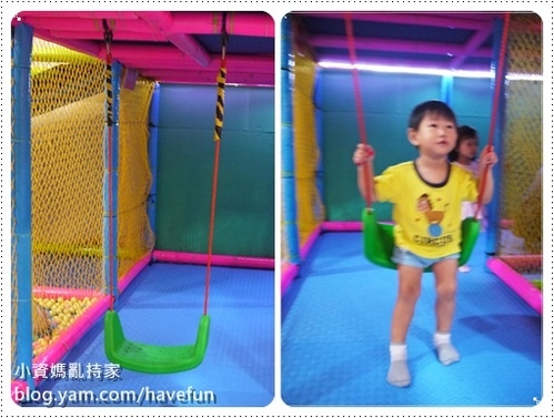 溜滑梯另一邊的通道,有兩個小小的盪鞦韆喔