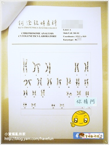 第二張報告就是拉拉的染色體核型圖,我上網找過,真的每個人的都長不一樣喔!