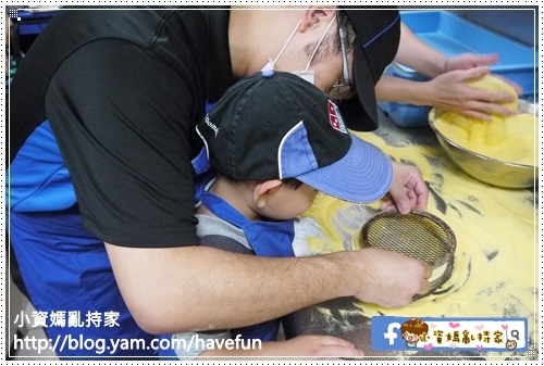 之後才拿出麵團讓小允壓壓壓扁