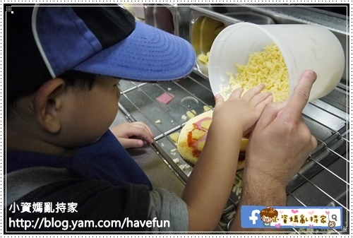 店員還細心交代,要乖乖等披薩出來,不可以碰唷!