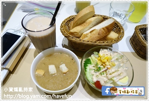 B套餐含麵包(一人一塊)/湯品/飲料/沙拉(甜點最後上所以照片在後面)