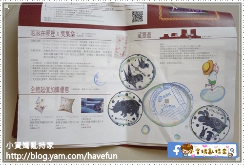 在全館4個地點集章(上面都有標註蓋章的地點),集滿後就可以憑$1000發票換幾米毛巾