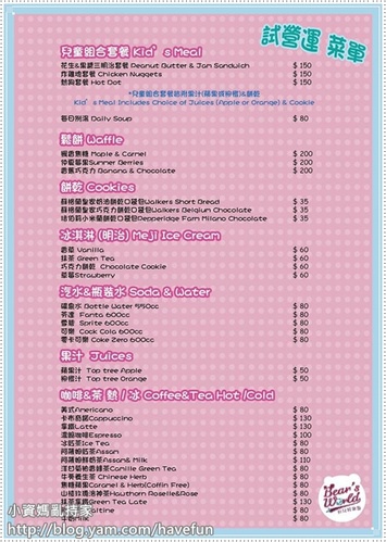 大家可以參考試營運菜單,都是輕食,只能算點心,不是正餐喔!