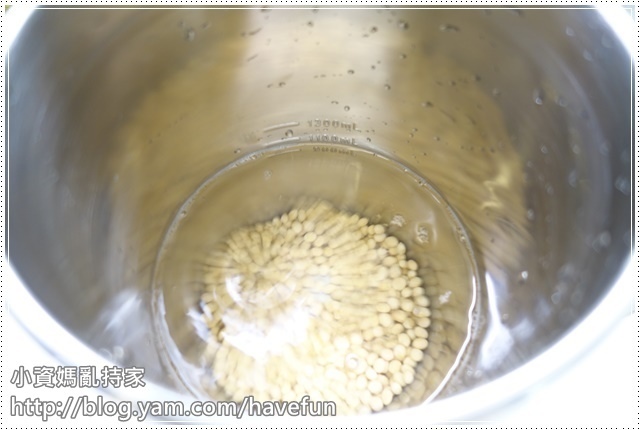 首先使用內附的量杯,量1又1/5杯的乾黃豆
