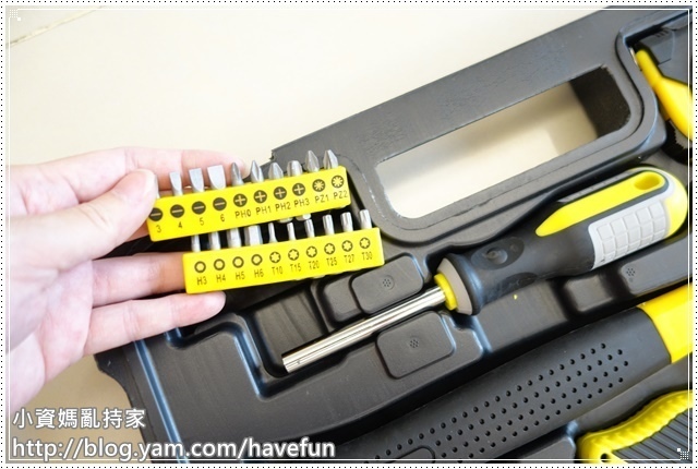 這次在特力屋發現一組居家DIY專用的工具組,配件非常齊全又好收納喔工具組本身就有包含一個硬殼工具箱,所以就算傢伙很多,也不用另外買工具箱來裝