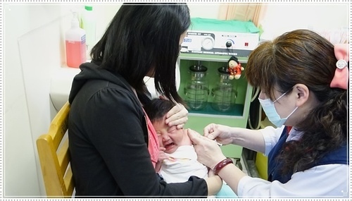 因為卡介苗是打皮下,推針推很~~~慢,我必須HOLD很緊不讓拉拉掙扎