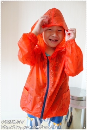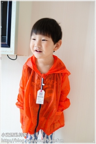 這次體驗的是麗嬰房新款的Little moni 15D輕薄果凍風衣外套- 橙色