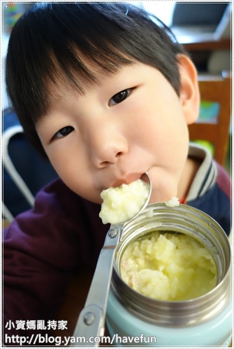 當時朋友看到我打開膳魔師燜燒罐要餵小允
