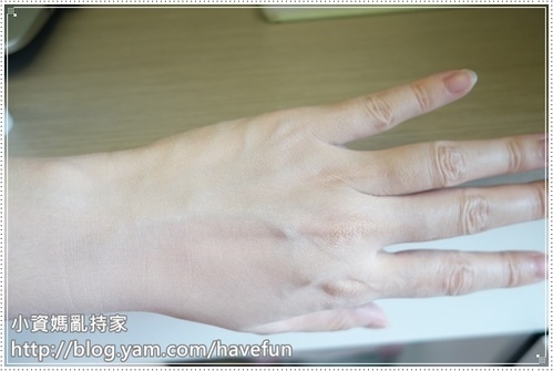 二是像剛剛試驗的,這款比較稠,要一點一點上,若是沒先在手上測試可能第一次使用就不小心上太厚重