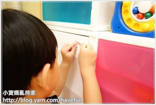 一邊幫玩具櫃黏上分類標籤,也會比較有印象