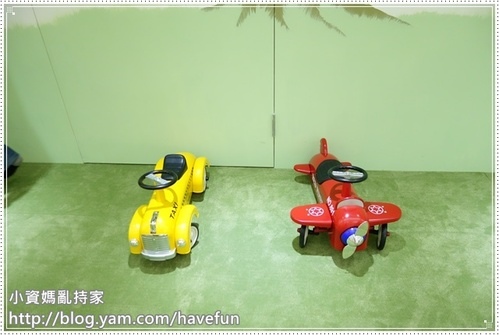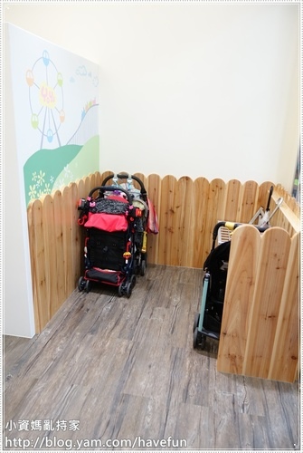 進門的右手邊特別用木頭圍籬規劃了一個娃娃車區