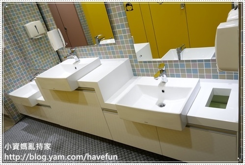 洗手台很貼心的設計了3種高度,分別給大人(中)/小童(右)/小小童(左)使用喔!