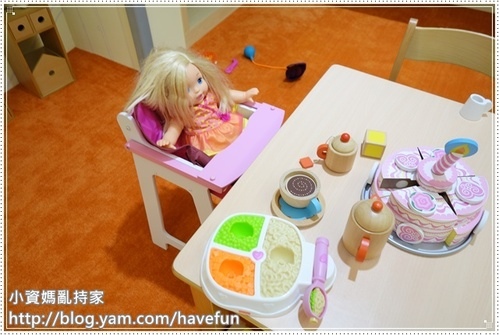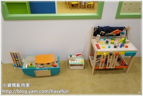 另一邊擺放了很多木頭玩具,可以站著玩,也可以自行搬小椅子來坐著玩