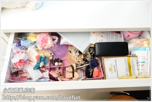 原本自己的梳妝台就已經有夠亂,自從有了拉拉,忍不住一直幫她買髮飾,抽屜就爆炸了!