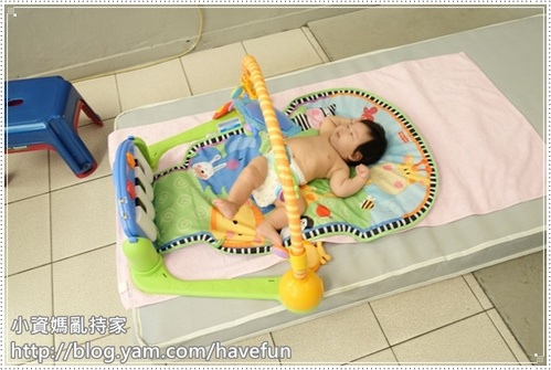 之前拉拉都用腳玩建力架,這幾天我抓著她的手去撥弄玩具,終於拉拉看到健力架會開始伸手去抓了!