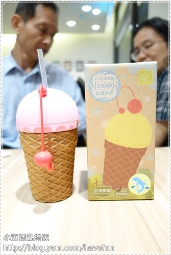 小朋友看到冰淇淋杯也很興奮!立刻拿起來喝