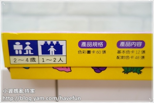 12組顏色母卡,各配對4張顏色圖案子卡,總共60張圖卡