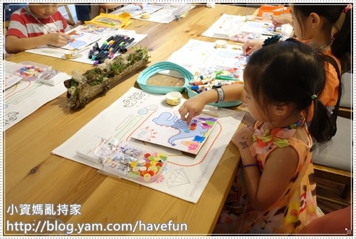 恐龍相框課程特別加入了手繪部分,大家拿出了事先準備好的彩色筆來替恐龍畫一個家