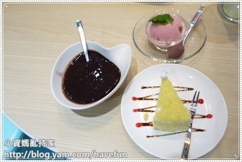 我點了蛋糕,挖省點紅豆紫米,小允則是點最愛吃的冰淇淋