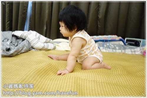 因為活動範圍太大,一直要阻止她靠近床邊好累,就開始讓她在地墊上活動