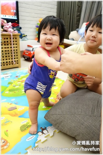為了要想要跟上我,妹妹嘗試爬出地墊